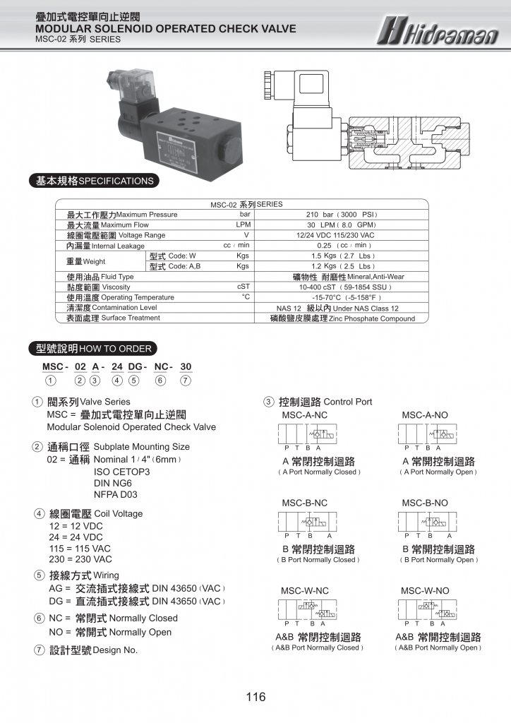 MSC-02系列疊加式電控單向止逆閥常規(guī)型號參考:MSC-02A-115AG-NC-30 , MSC-02A-115AG-NO-30 , MSC-02A-115DG-NC-30 , MSC-02A-115DG-NO-30 , MSC-02A-12AG-NC-30 , MSC-02A-12AG-NO-30 , MSC-02A-12DG-NC-30 , MSC-02A-12DG-NO-30 , MSC-02A-230AG-NC-30 , MSC-02A-230AG-NO-30 , MSC-02A-230DG-NC-30 , MSC-02A-230DG-NO-30 , MSC-02A-24AG-NC-30 , MSC-02A-24AG-NO-30 , MSC-02A-24DG-NC-30 , MSC-02A-24DG-NO-30 , MSC-02B-115AG-NC-30 , MSC-02B-115AG-NO-30 , MSC-02B-115DG-NC-30 , MSC-02B-115DG-NO-30 , MSC-02B-12AG-NC-30 , MSC-02B-12AG-NO-30 , MSC-02B-12DG-NC-30 , MSC-02B-12DG-NO-30 , MSC-02B-230AG-NC-30 , MSC-02B-230AG-NO-30 , MSC-02B-230DG-NC-30 , MSC-02B-230DG-NO-30 , MSC-02B-24AG-NC-30 , MSC-02B-24AG-NO-30 , MSC-02B-24DG-NC-30 , MSC-02B-24DG-NO-30 , MSC-02W-115AG-NC-30 , MSC-02W-115AG-NO-30 , MSC-02W-115DG-NC-30 , MSC-02W-115DG-NO-30 , MSC-02W-12AG-NC-30 , MSC-02W-12AG-NO-30 , MSC-02W-12DG-NC-30 , MSC-02W-12DG-NO-30 , MSC-02W-230AG-NC-30 , MSC-02W-230AG-NO-30 , MSC-02W-230DG-NC-30 , MSC-02W-230DG-NO-30 , MSC-02W-24AG-NC-30 , MSC-02W-24AG-NO-30 , MSC-02W-24DG-NC-30 , MSC-02W-24DG-NO-30