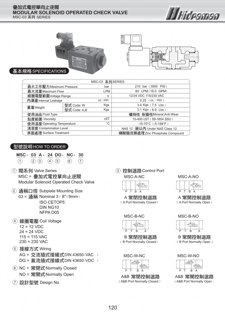MSC-03系列疊加式電控單向止逆閥常規(guī)型號參考:MSC-03A-115AG-NC-30 , MSC-03A-115AG-NO-30 , MSC-03A-115DG-NC-30 , MSC-03A-115DG-NO-30 , MSC-03A-12AG-NC-30 , MSC-03A-12AG-NO-30 , MSC-03A-12DG-NC-30 , MSC-03A-12DG-NO-30 , MSC-03A-230AG-NC-30 , MSC-03A-230AG-NO-30 , MSC-03A-230DG-NC-30 , MSC-03A-230DG-NO-30 , MSC-03A-24AG-NC-30 , MSC-03A-24AG-NO-30 , MSC-03A-24DG-NC-30 , MSC-03A-24DG-NO-30 , MSC-03B-115AG-NC-30 , MSC-03B-115AG-NO-30 , MSC-03B-115DG-NC-30 , MSC-03B-115DG-NO-30 , MSC-03B-12AG-NC-30 , MSC-03B-12AG-NO-30 , MSC-03B-12DG-NC-30 , MSC-03B-12DG-NO-30 , MSC-03B-230AG-NC-30 , MSC-03B-230AG-NO-30 , MSC-03B-230DG-NC-30 , MSC-03B-230DG-NO-30 , MSC-03B-24AG-NC-30 , MSC-03B-24AG-NO-30 , MSC-03B-24DG-NC-30 , MSC-03B-24DG-NO-30 , MSC-03W-115AG-NC-30 , MSC-03W-115AG-NO-30 , MSC-03W-115DG-NC-30 , MSC-03W-115DG-NO-30 , MSC-03W-12AG-NC-30 , MSC-03W-12AG-NO-30 , MSC-03W-12DG-NC-30 , MSC-03W-12DG-NO-30 , MSC-03W-230AG-NC-30 , MSC-03W-230AG-NO-30 , MSC-03W-230DG-NC-30 , MSC-03W-230DG-NO-30 , MSC-03W-24AG-NC-30 , MSC-03W-24AG-NO-30 , MSC-03W-24DG-NC-30 , MSC-03W-24DG-NO-30