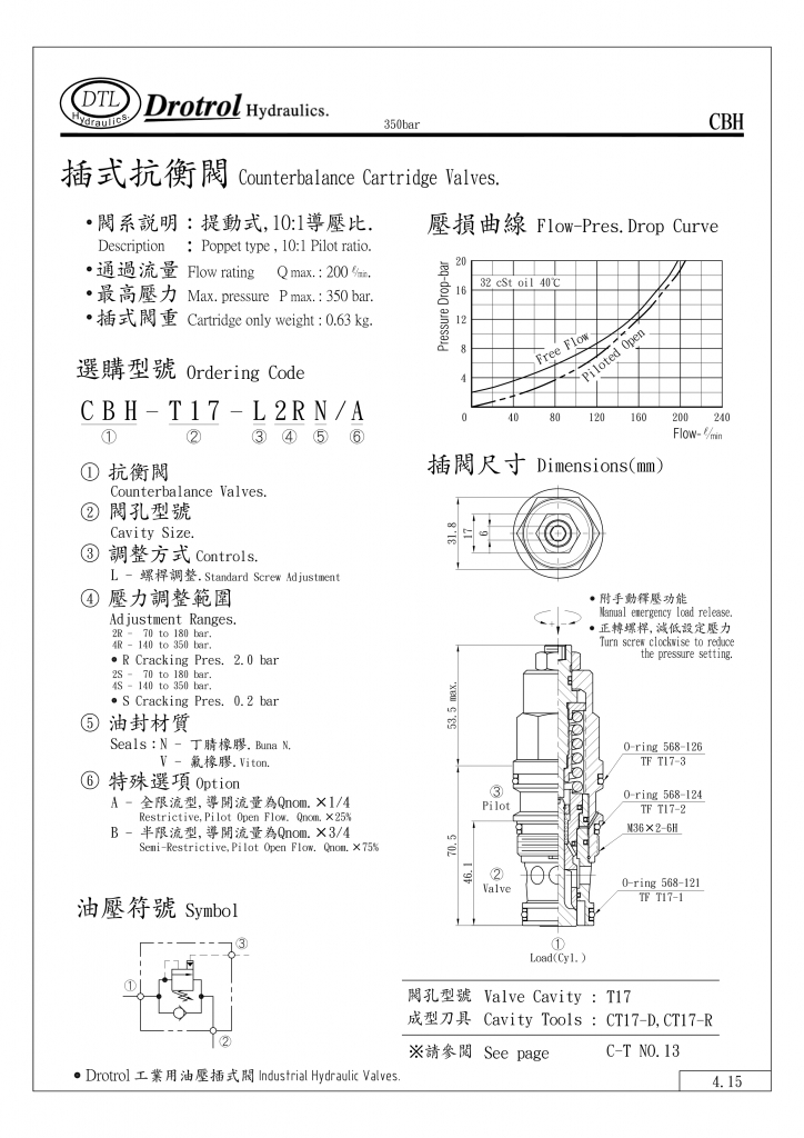 DTL插式抗衡閥常規(guī)型號參考:CBH-T17-L2RN/A , CBH-T17-L2RN/B , CBH-T17-L2RV/A , CBH-T17-L2RV/B , CBH-T17-L2SN/A , CBH-T17-L2SN/B , CBH-T17-L2SV/A , CBH-T17-L2SV/B , CBH-T17-L4RN/A , CBH-T17-L4RN/B , CBH-T17-L4RV/A , CBH-T17-L4RV/B , CBH-T17-L4SN/A , CBH-T17-L4SN/B , CBH-T17-L4SV/A , CBH-T17-L4SV/B