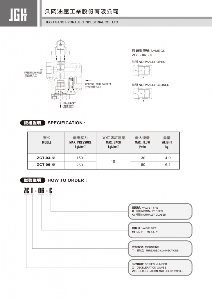 JGH機械式節(jié)流閥常規(guī)型號參考:ZCT-03-B , ZCT-03-C , ZCT-06-B , ZCT-06-C