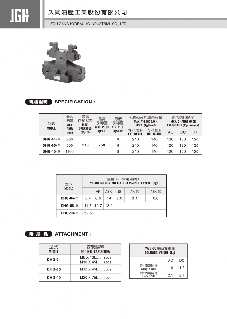 JGH久岡方向控制閥 DHG系列電磁液控方向閥