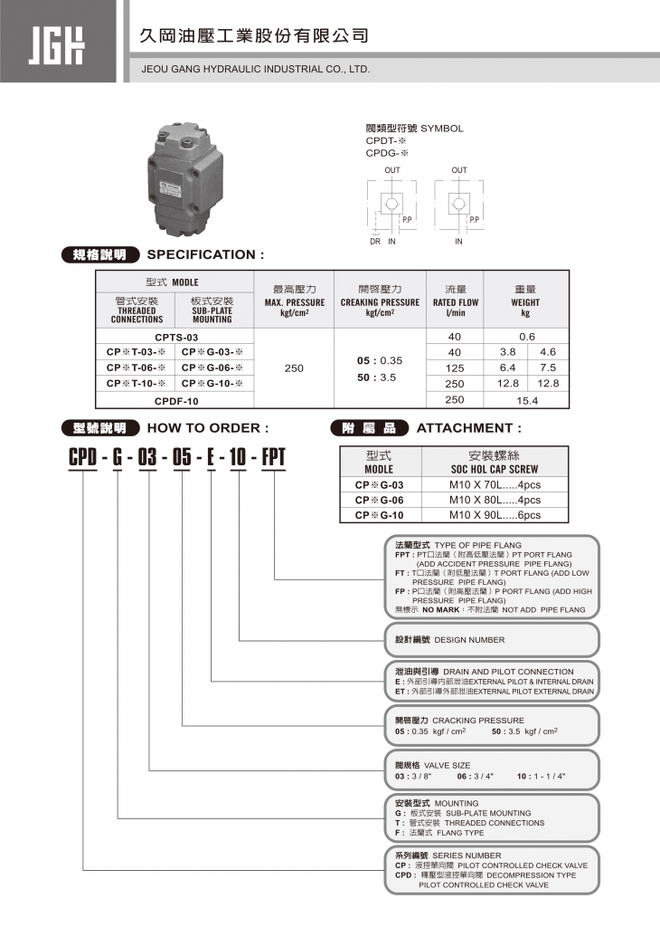 JGH久岡方向控制閥 CPDG,CPDT系列液控單向閥