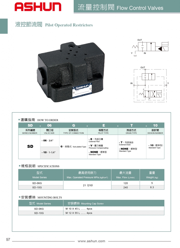 ASHUN油順流量控制閥 SD系列液控節(jié)流閥