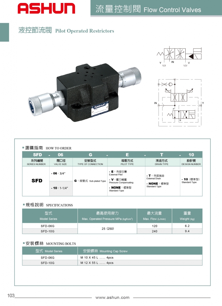 ASHUN油順流量控制閥 SFD系列液控節(jié)流閥