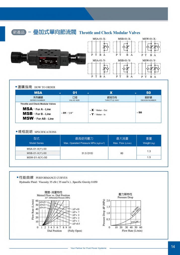 ASHUN疊加式單向節(jié)流閥常規(guī)型號參考:MSA-01-X-50 , MSA-01-Y-50 , MSB-01-X-50 , MSB-01-Y-50 , MSW-01-X-50 , MSW-01-Y-50