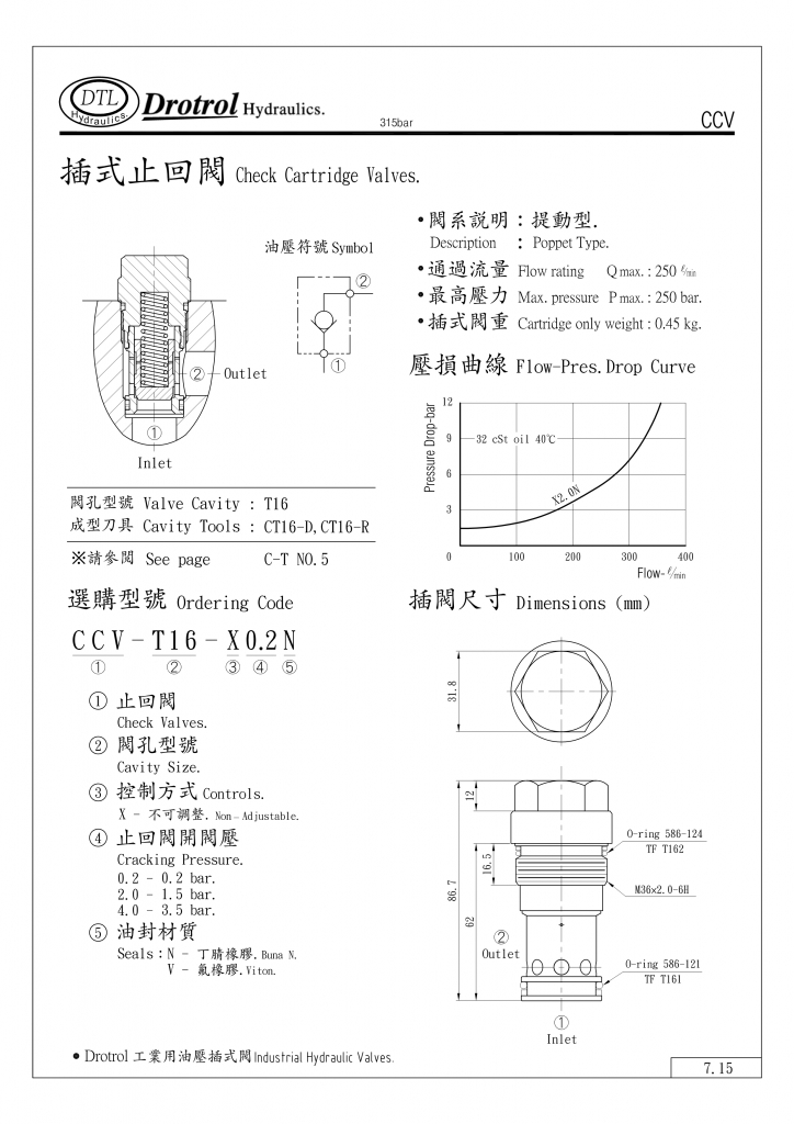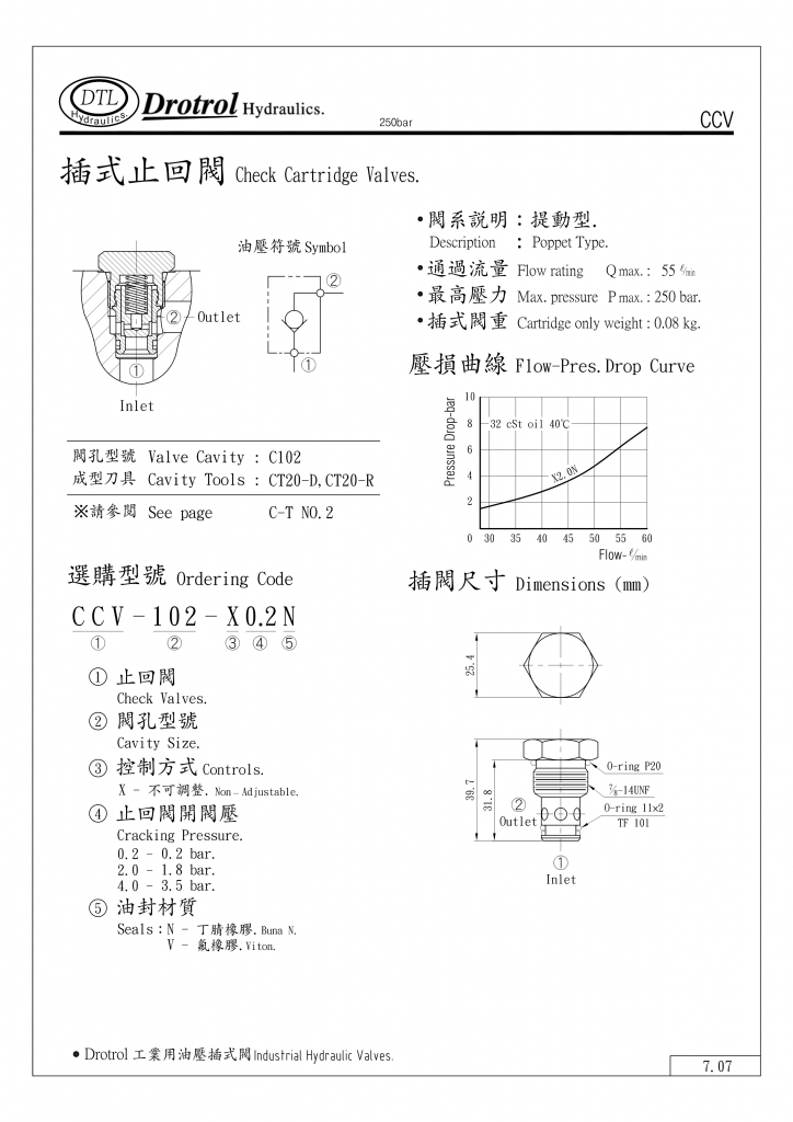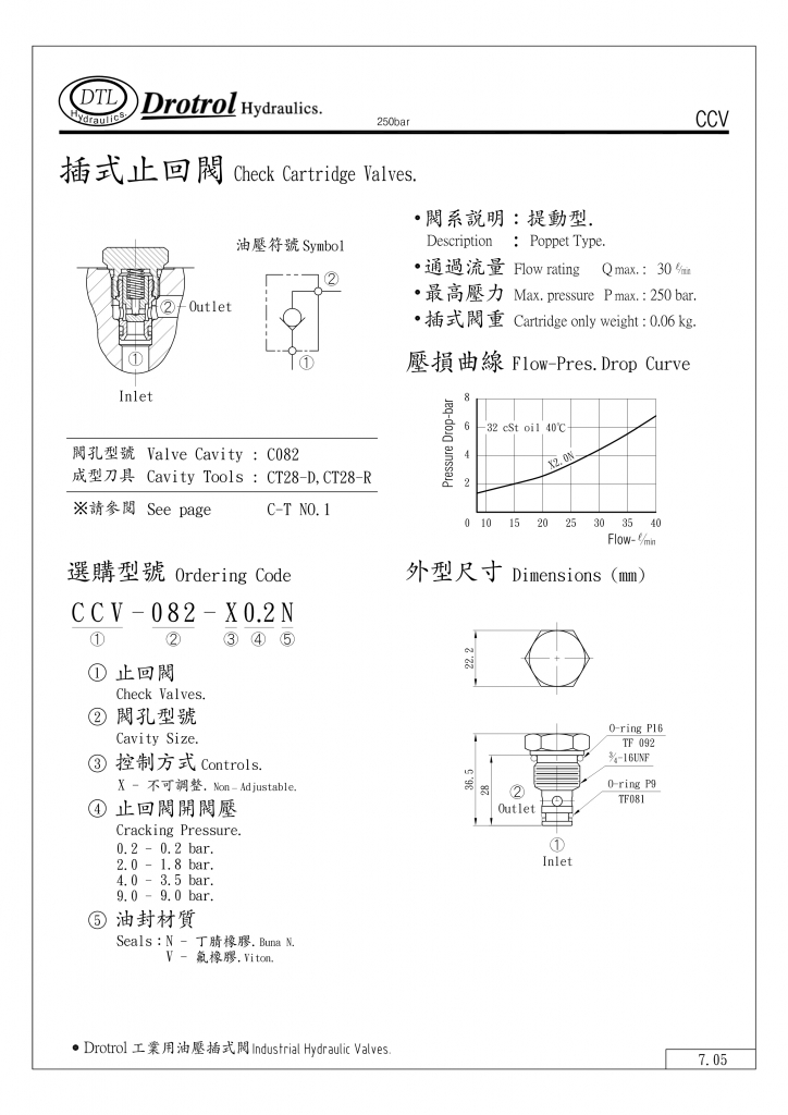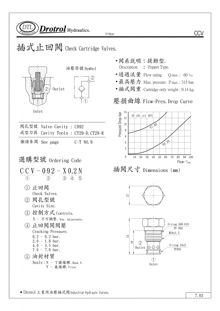 DTL插式止回閥部分常規(guī)型號參考:CCV-092-X0.2N , CCV-092-X0.2V , CCV-092-X2.0N , CCV-092-X2.0V , CCV-092-X4.0N , CCV-092-X4.0V , CCV-092-X7.0N , CCV-092-X7.0V ,
