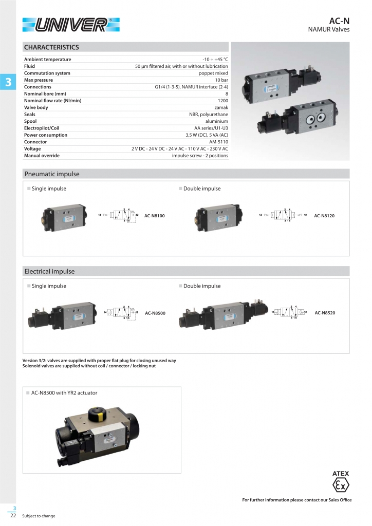 UNIVER板式電磁閥部分常規(guī)型號(hào)參考:AC-N8100 , AC-N8120 , AC-N8500 , AC-N8520