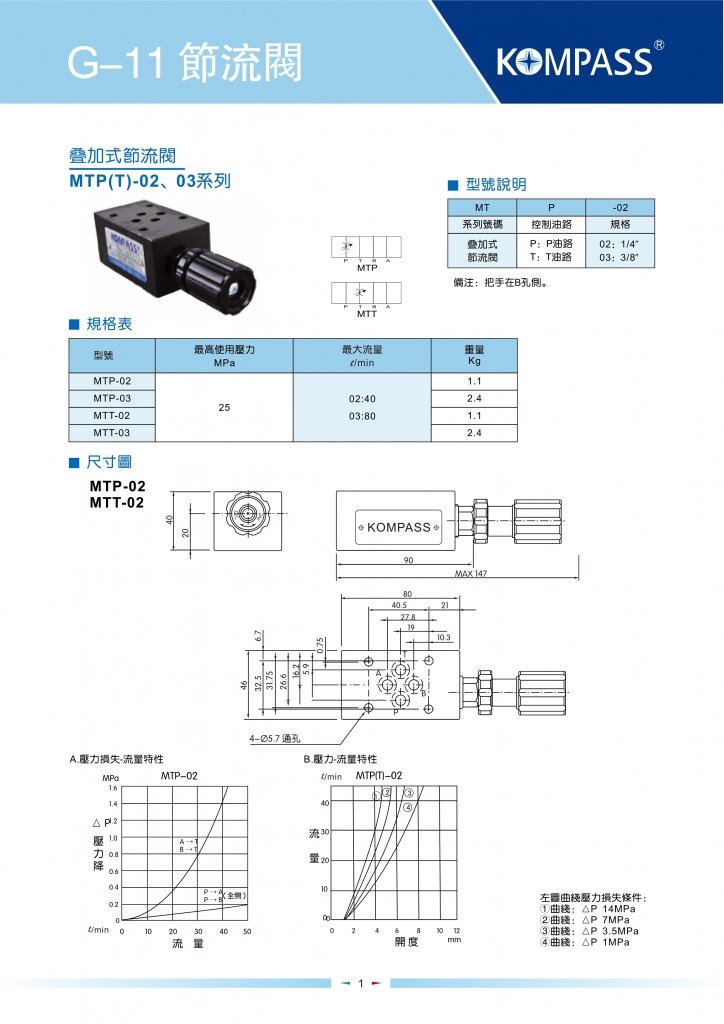 KOMPASS疊加式節(jié)流閥部分常規(guī)型號(hào)參考:MTP-02 , MTT-02 , MTP-03 , MTP-03
