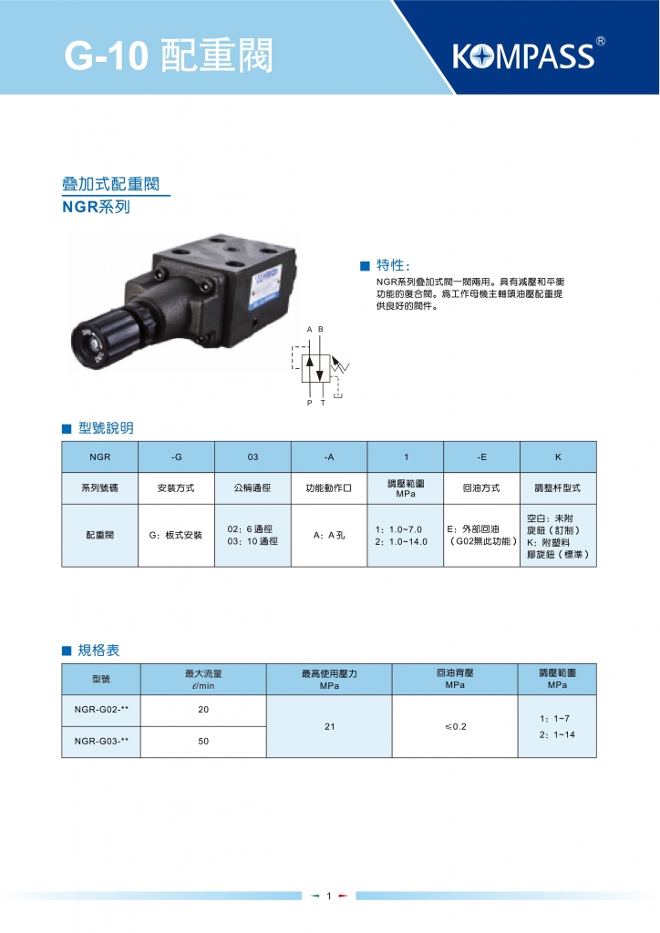 KOMPASS康百世疊加閥 NGR-G02,G03系列疊加式配重閥