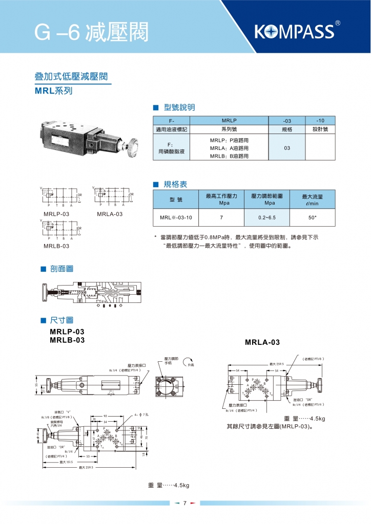 KOMPASS康百世疊加閥 MRLP,MRLA,MRLB-03系列疊加式低壓減壓閥