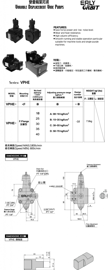 EALY弋力葉片泵 變量型輪葉泵 VPHE系列低壓變量葉片泵