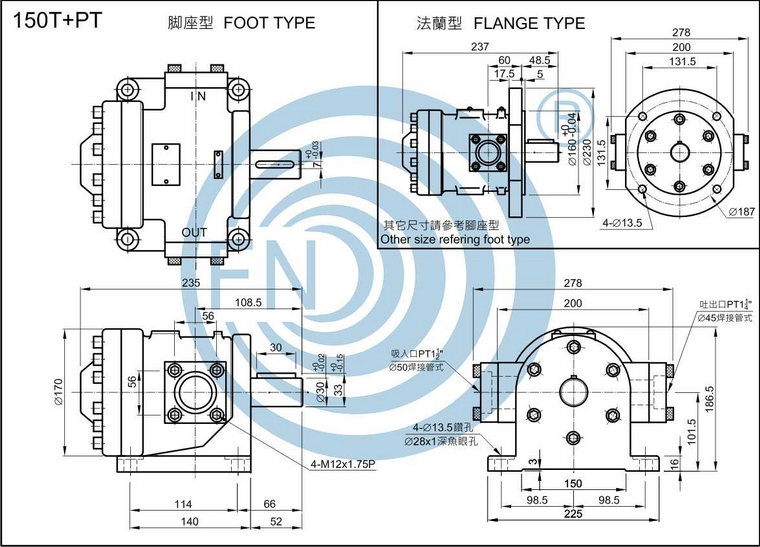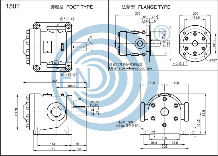 | 150T-48 | 48.2 | 58.0 | 72..6 | 86.4 | 70 | 900 | 1500 | 1?? 1/2” | 1 1/4” | 26 | 25 |