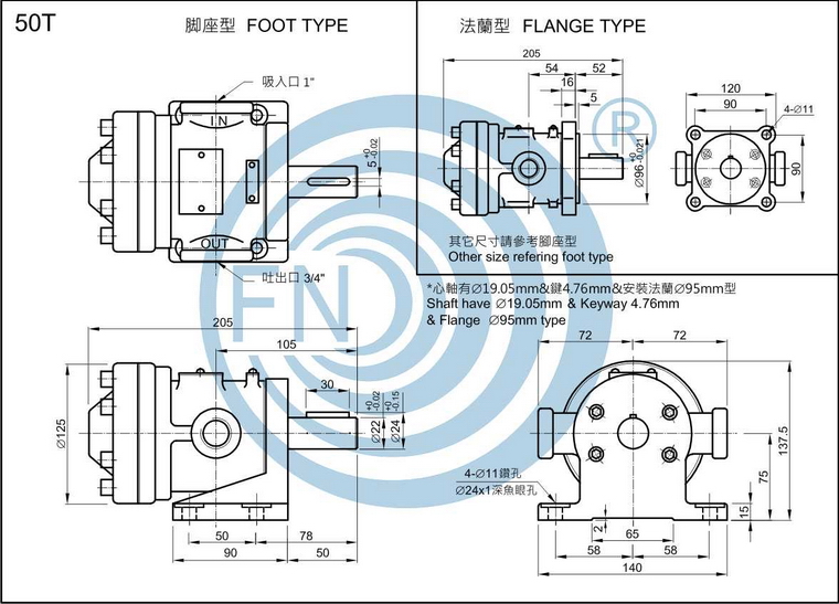 | 50T-07 | 7.0 | 8.2 | 10.3 | ?? 12.5 | 70 | 950 | 1800 | 1” | 3/4” | 10.5 | 9 |