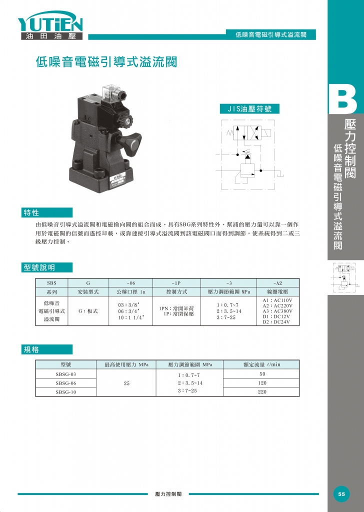 YUTIEN油田壓力控制閥 SBSG系列低噪音電磁引導(dǎo)式溢流閥