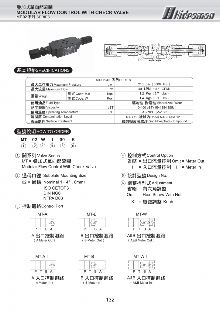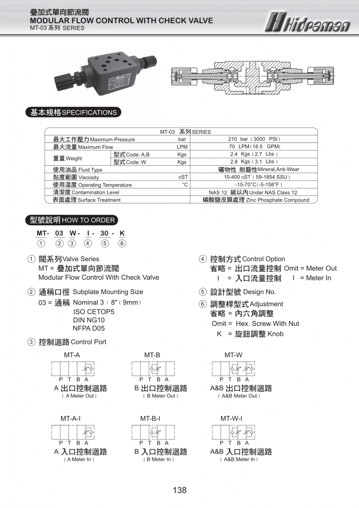 HIDRAMAN海德門(mén)疊加式控制閥 MT-02,MT-03系列疊加式單向節(jié)流閥
