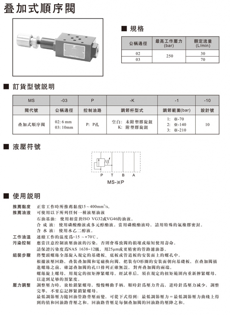 NORTHMAN北部精機(jī)疊加閥 MS-02,03系列疊加式順序閥