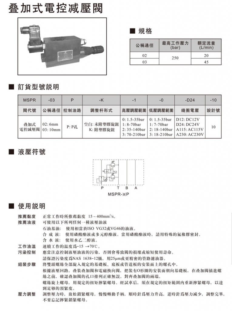 NORTHMAN北部精機(jī)疊加閥 MSPR-02,03系列疊加式電控減壓閥