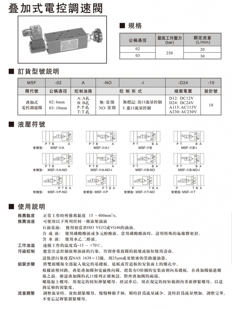 NORTHMAN北部精機(jī)疊加閥 MSF-02,03系列疊加式電控調(diào)速閥