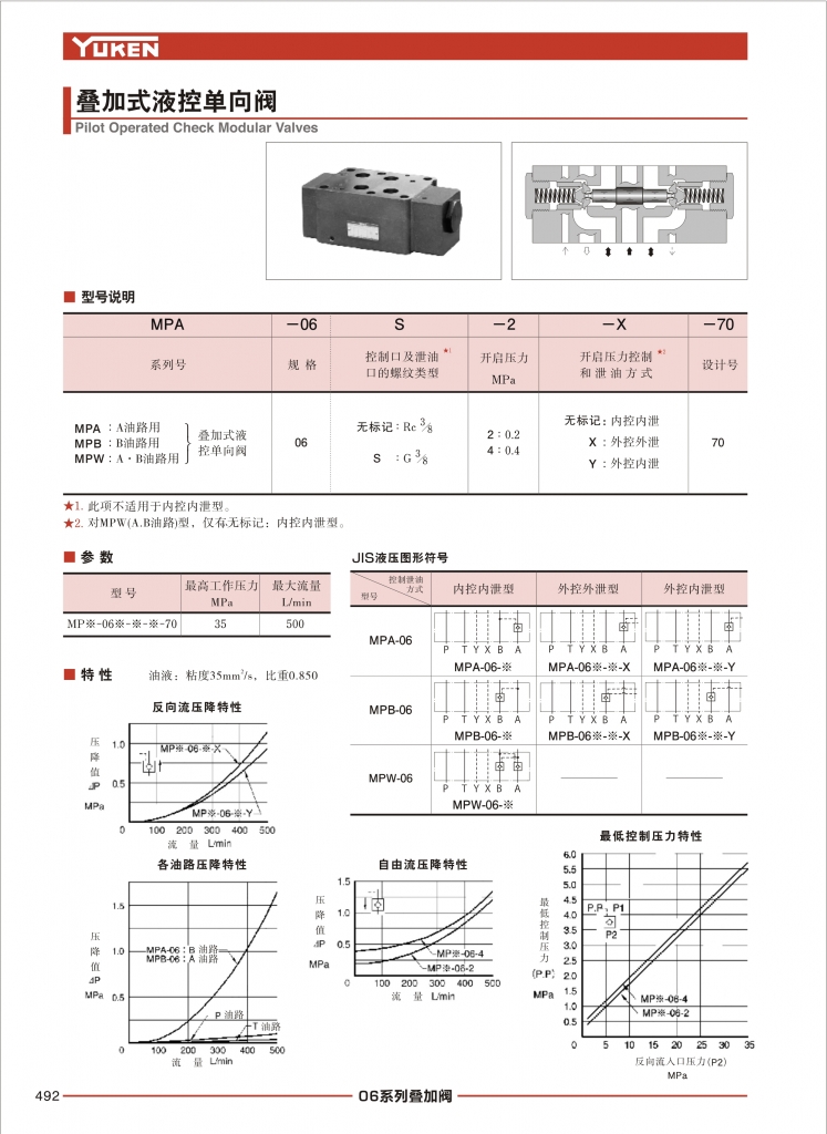 YUKEN疊加式液控單向閥部分常規(guī)型號(hào)參考:MPA-06-2-70 , MPA-06-2-X-70 , MPA-06-2-Y-70 , MPA-06-4-70 , MPA-06-4-X-70 , MPA-06-4-Y-70 , MPA-06S-2-70 , MPA-06S-2-X-70 , MPA-06S-2-Y-70 , MPA-06S-4-70 , MPA-06S-4-X-70 , MPA-06S-4-Y-70 , MPB-06-2-70 , MPB-06-2-X-70 , MPB-06-2-Y-70 , MPB-06-4-70 , MPB-06-4-X-70 , MPB-06-4-Y-70 , MPB-06S-2-70 , MPB-06S-2-X-70 , MPB-06S-2-Y-70 , MPB-06S-4-70 , MPB-06S-4-X-70 , MPB-06S-4-Y-70 , MPW-06-2-70 , MPW-06-2-X-70 , MPW-06-2-Y-70 , MPW-06-4-70 , MPW-06-4-X-70 , MPW-06-4-Y-70 , MPW-06S-2-70 , MPW-06S-2-X-70 , MPW-06S-2-Y-70 , MPW-06S-4-70 , MPW-06S-4-X-70 , MPW-06S-4-Y-70