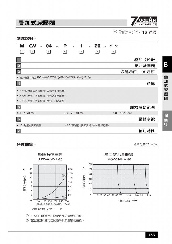 7OCEAN七洋疊加閥 MGV-02,03,04系列疊加式減壓閥