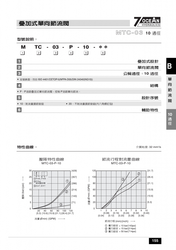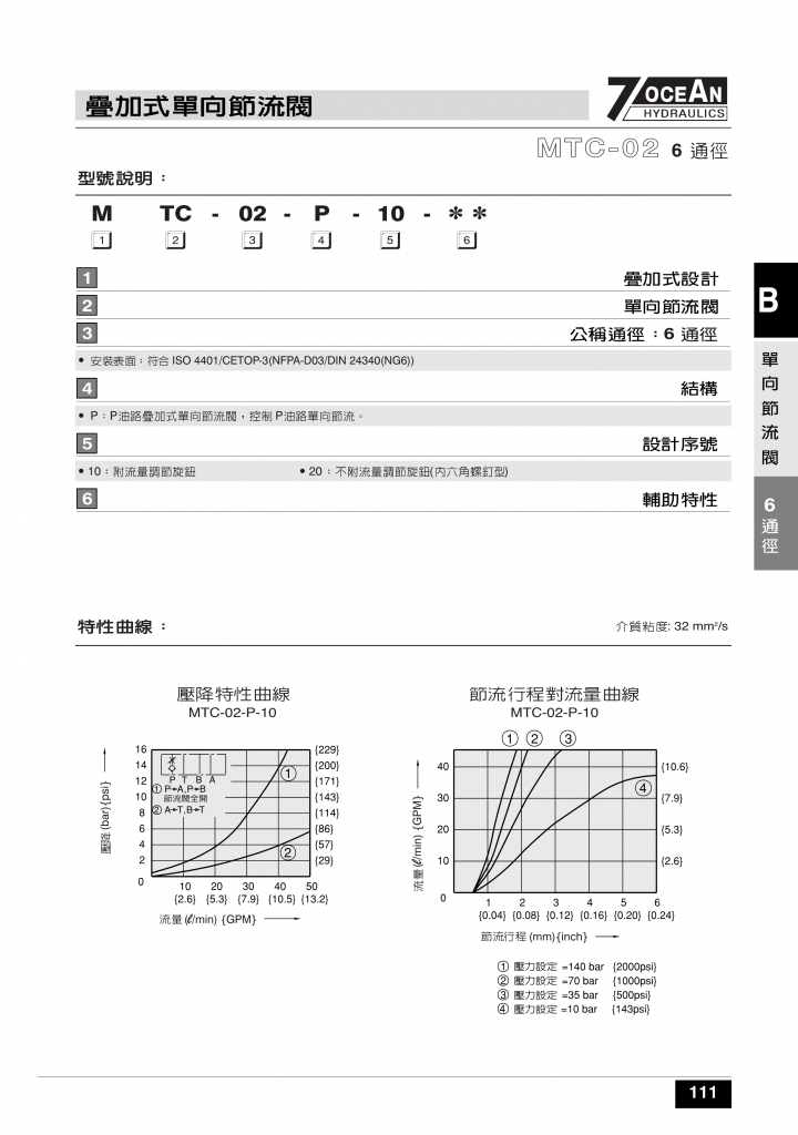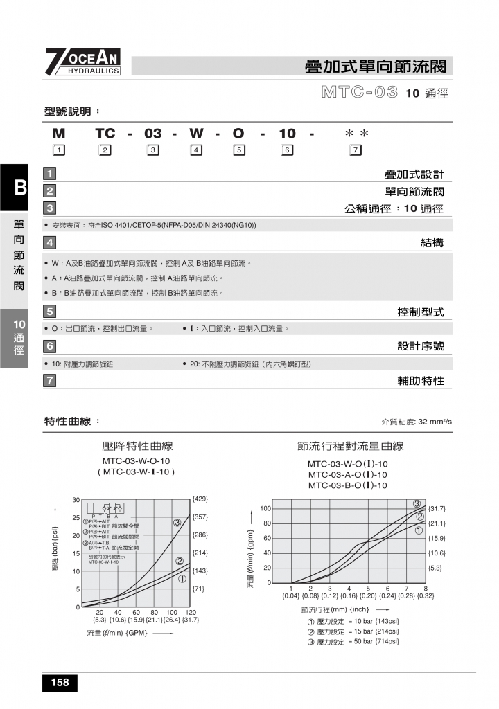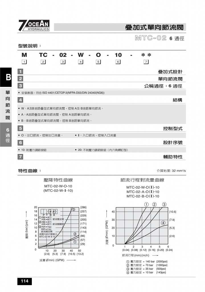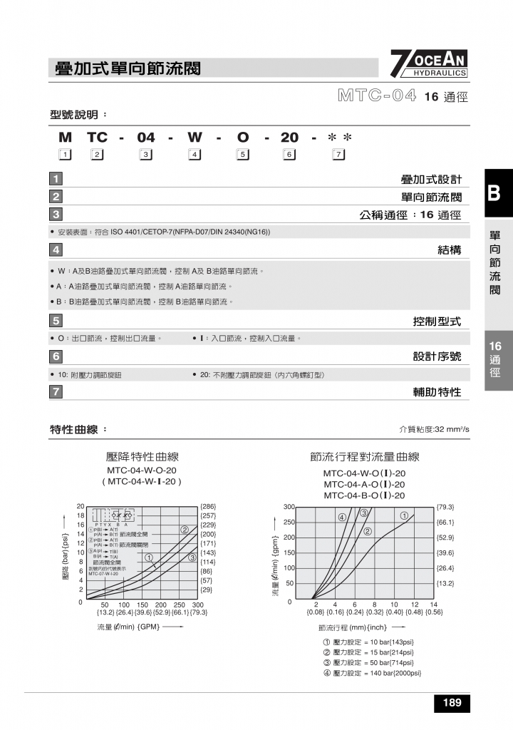 7OCEAN七洋疊加閥 MTC-02,03,04系列疊加式單向節(jié)流閥