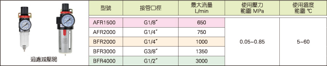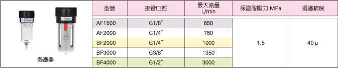 三點組合AC1500 , AC2000 , BC2000 , BC3000 , BC4000 , 二點組合 AFC1500 , AFC2000 , BFC2000 , BFC3000 , BFC4000 過濾器 AF1500 , AF2000 , BF2000 , BF3000 , BF4000 調(diào)壓閥 AR1500 , AR2000 , BR2000 , BR3000 , BR4000 過濾調(diào)壓