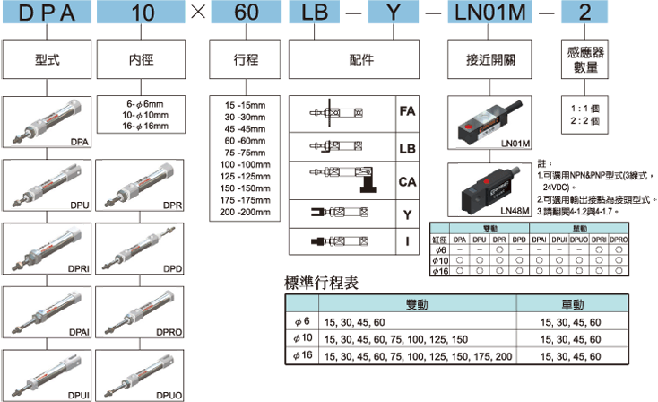 | 單動標(biāo)準(zhǔn)行程(mm) | 15 , 30 , 45 , 60 | ||