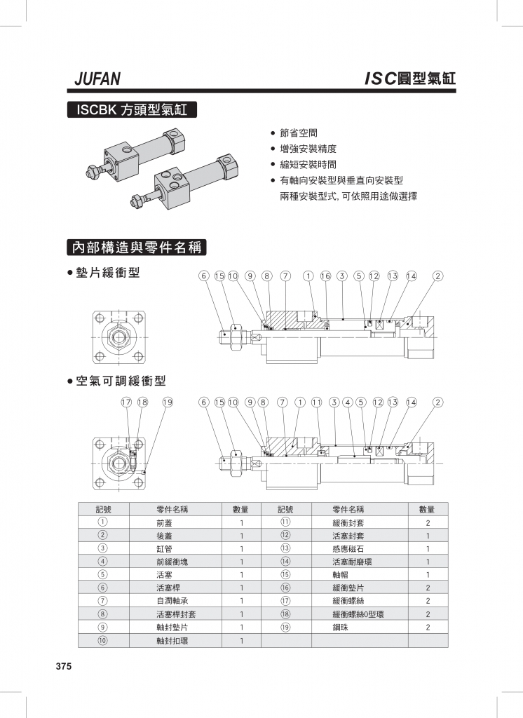 JUFAN君帆氣缸 ISC系列圓形氣缸