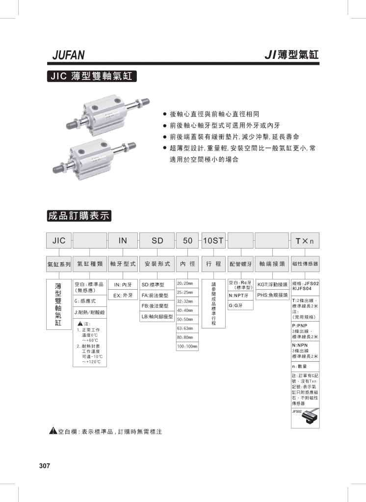 JIA薄型復動氣缸JIB薄型雙軸氣缸JIC薄型雙軸氣缸 JID雙軸薄型前進可調(diào)氣缸JIL薄型長行程復動氣缸