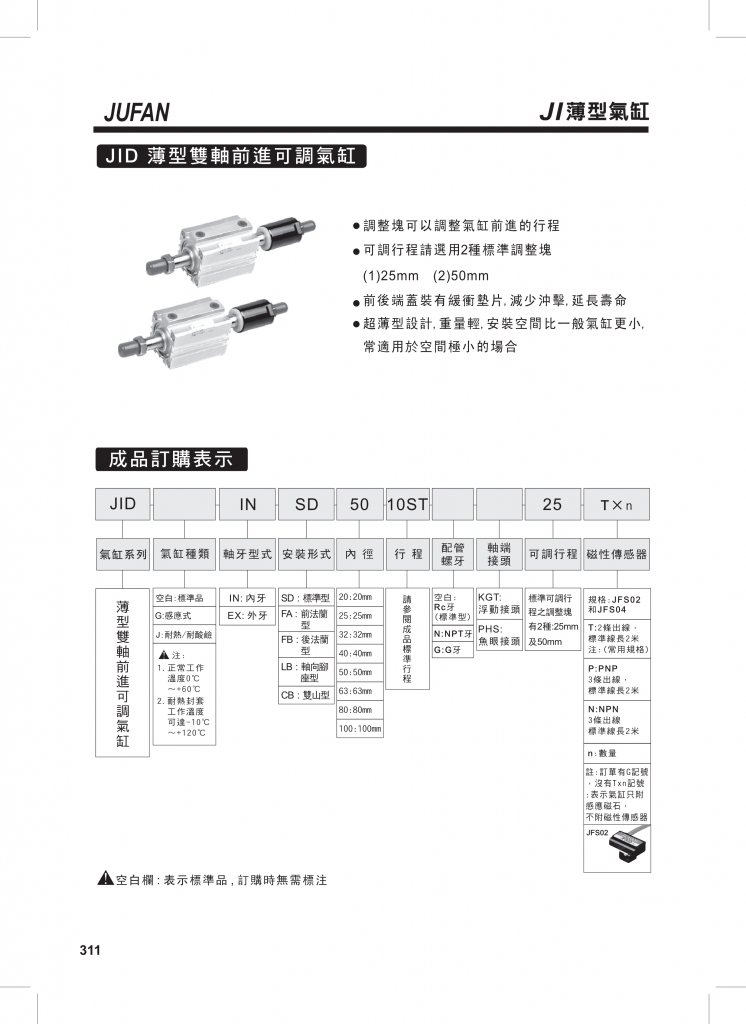 JUFAN君帆氣缸 JI系列薄型氣缸