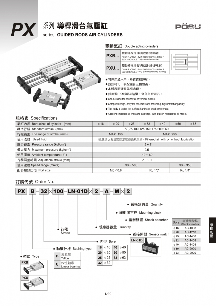 PXU…  雙動導(dǎo)桿滑臺移動型 (線性軸承)